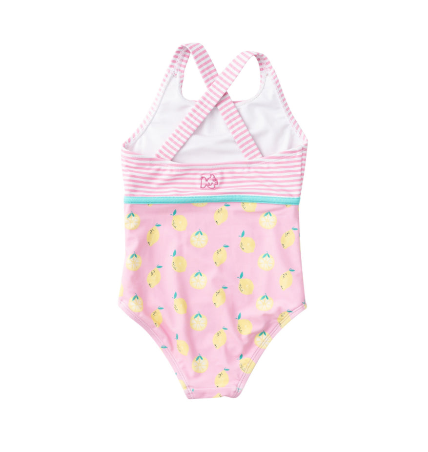 *PREORDER* GIRLS’ BOARDWALK CROSS-BACK SWIMSUIT - PINK FROSTING LEMON PRINT